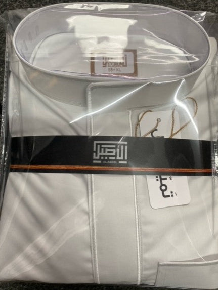 This beautifully made Aseel Jubba / Thobe has been produced by the famous Saudi company Al-Aseel and is from the new high-quality premium range. The thobe comes in a Off white fabric. This thobe has embroidery design. With two side pockets (with a sewn-in coin pocket) and a breast pocket, these are practical thobes and are widely worn throughout the Middle East Open Sleeves easy for wudu Front Pocket and 2 sides Pockets . It's also machine washable and made with lightweight fabric for breathability. Enjoy a well-crafted, durable thobe for any occasion.