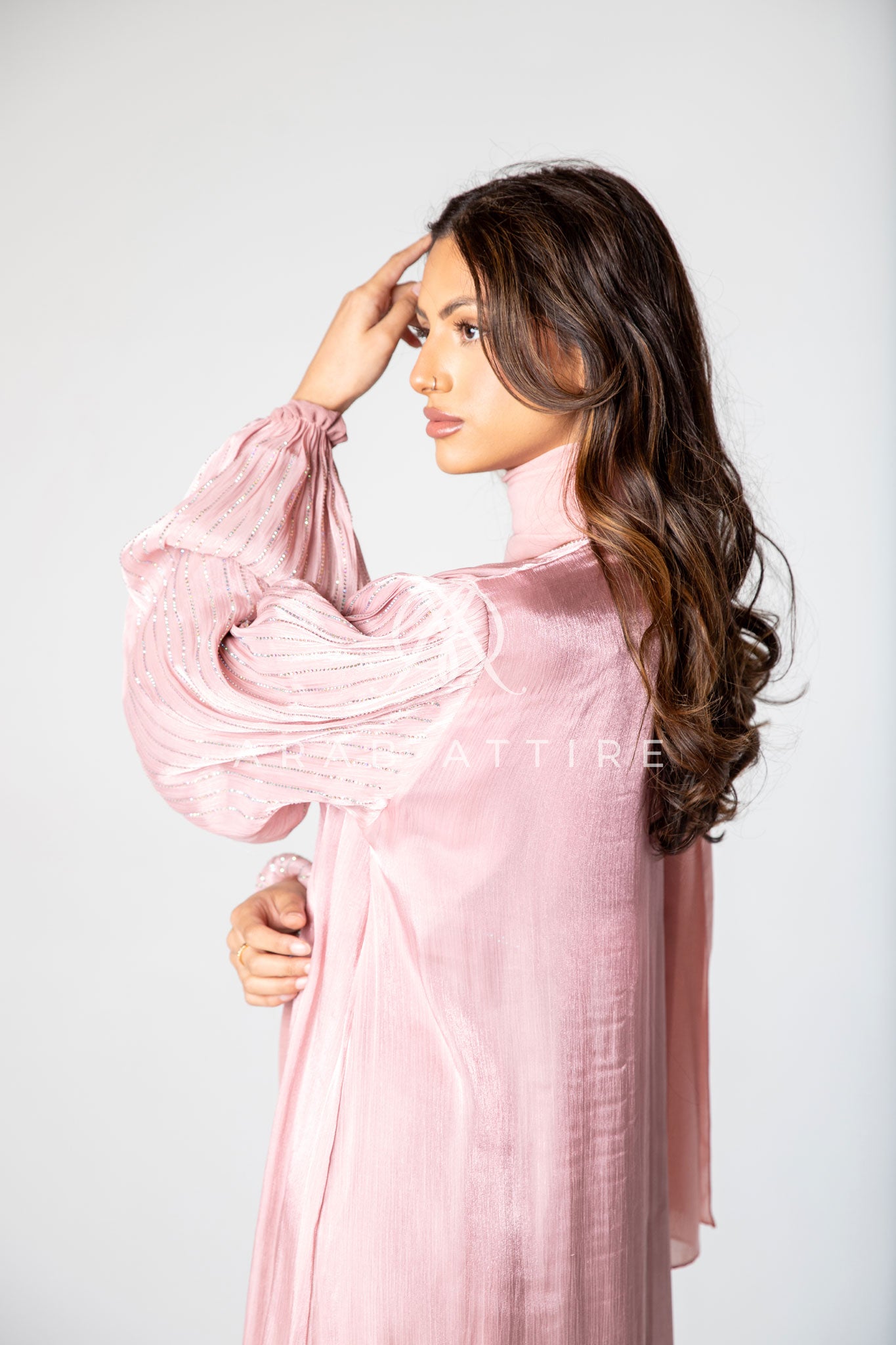 A stunning glam balloon sleeve abaya, featuring beautiful diamantes on the sleeves. Elegant and sophisticated, this...