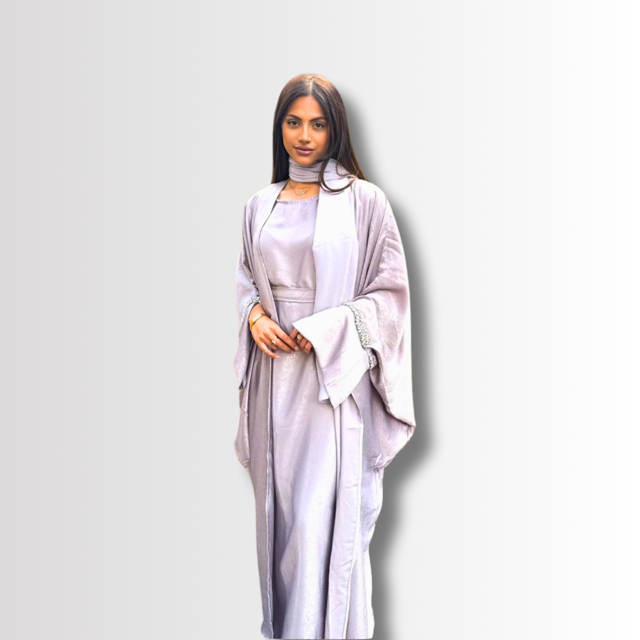 This gorgeous 4-piece abaya set includes a full length embellished abaya with wide slit sleeves, slip dress,...